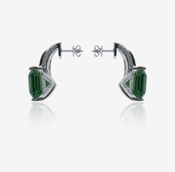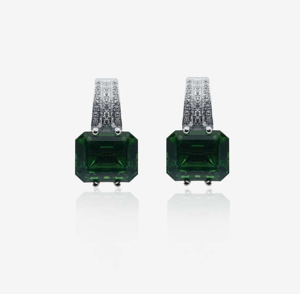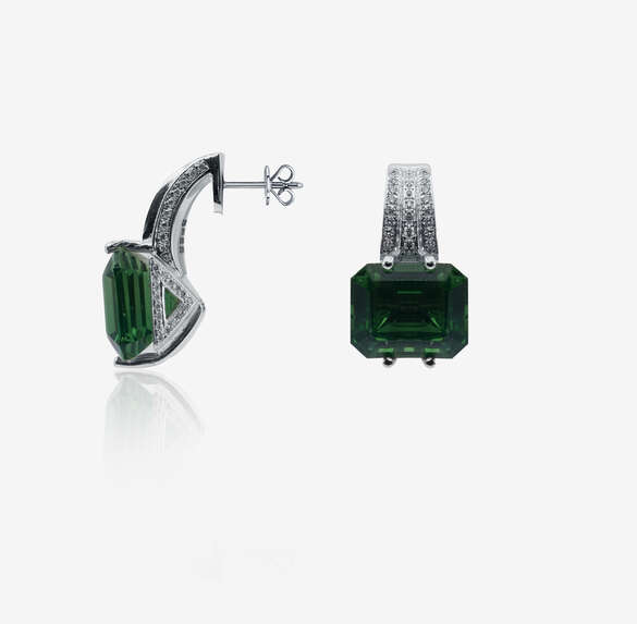 Beyaz Altın Pırlanta ve Değerli Taşlı Küpe