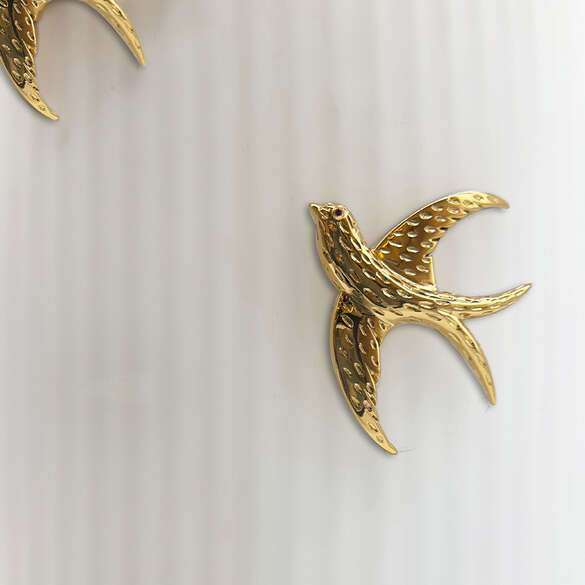Mat beyaz cam üzerine altın kaplamalı kırlangıç kuşları gözeri yakut detaylı dekoratif vazo