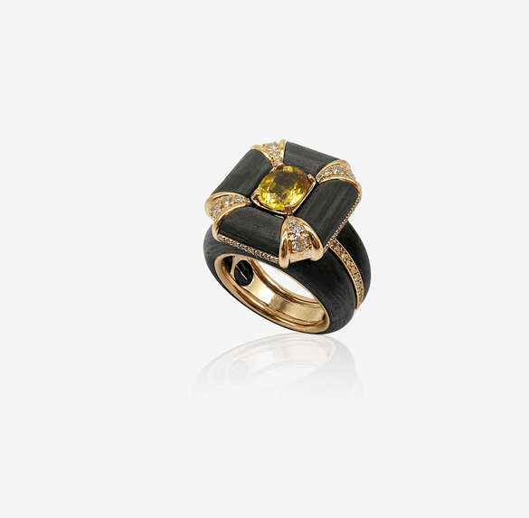 Pembe altın, Karbon Fiber Pırlanta ve Sarı Safir Yüzük