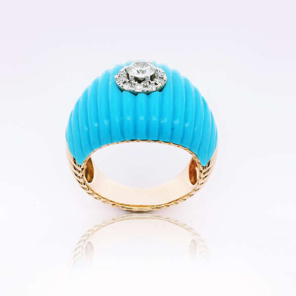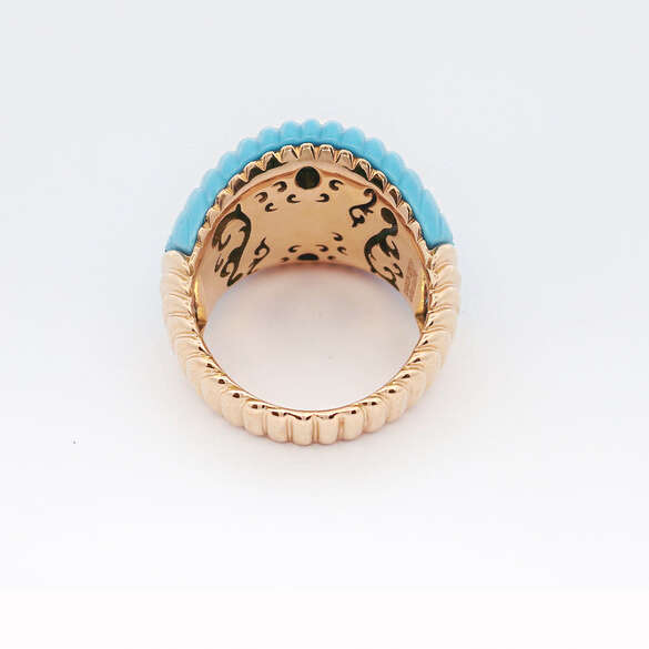 Turkuaz taşlı ve pırlantalı 18k pembe altın yüzük