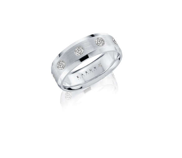 The Karun beveled wedding ring model which we designed for both men and women, elegantly presents the love you share. Shiny edges on both sides add a modern twist and glamor to this timeless style. Specially produced wedding rings are engraved free of charge and the final touch is completed by placing a diamond or a precious stone inside. Please contact us at +90 212 227 74 76 to find out more about this offer.