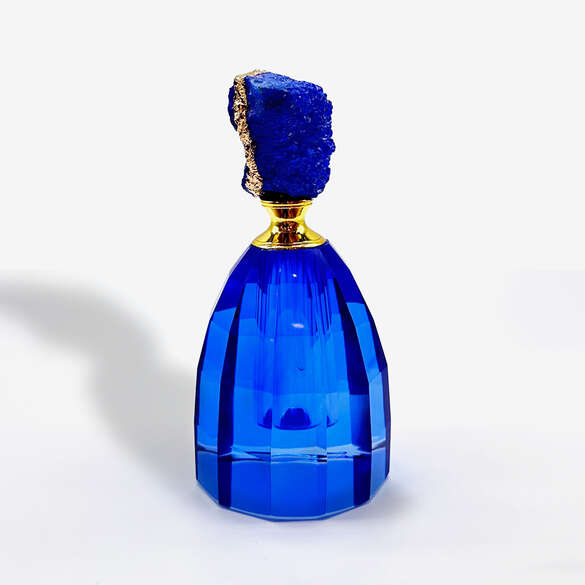 Karun Home tasarımına sahip el yapımı renkli camlı parfüm şişesi. Karun Home tasarımına sahip el yapımı renkli camlı parfüm şişesi.
