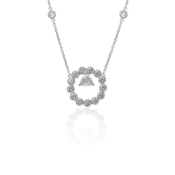 18K Bayaz altın üçgen ve yuvarlak kesim pırlanta kolye